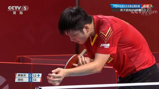 樊振东3-1周恺(8:11、14:12、11:5、14:12)