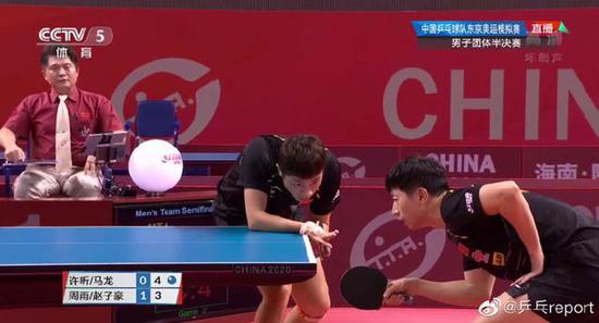 马龙/许昕3-1周雨/赵子豪(8:11、11:5、11:4、11:7)